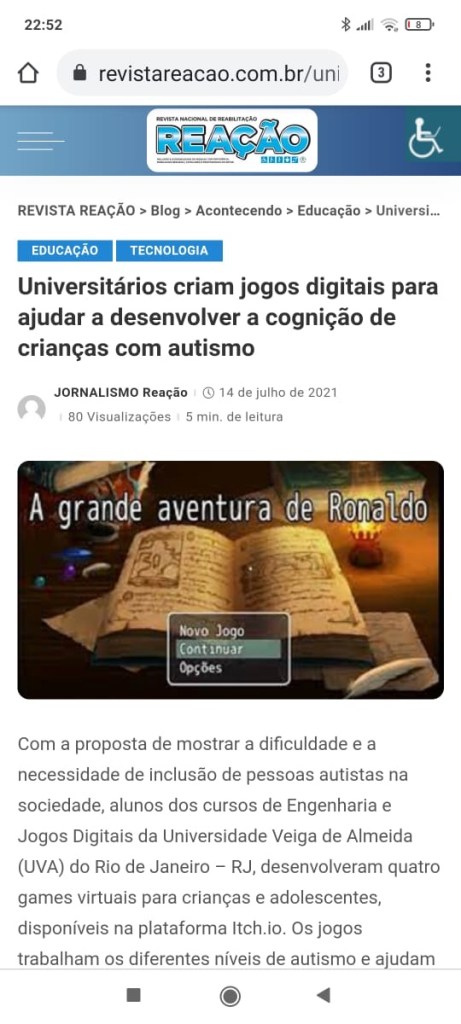Hoje acordei com a notícia incrível que o jogo que meu filho Yan Gabriel Telles desenvolveu para ajudar crianças autistas está sendo reconhecido e inclusive ganhou matérias em revistas especializadas.